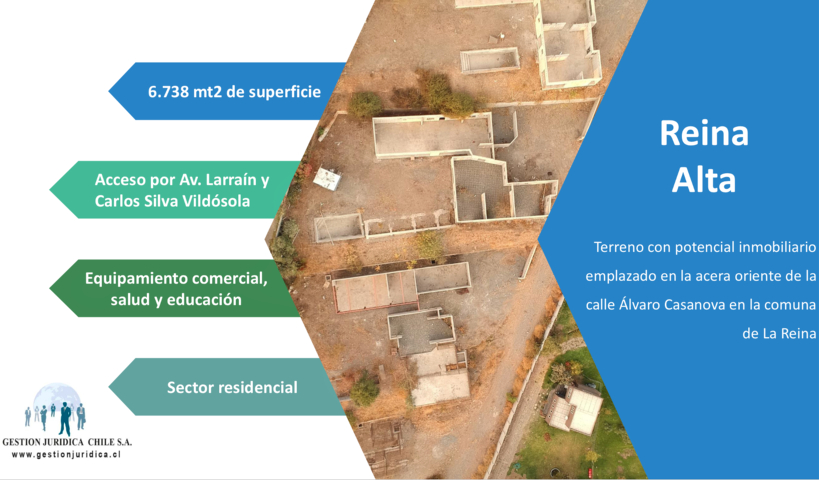 Proyecto$destacadoTerreno con potencial inmobiliario emplazado en la acera oriente de calle Álvaro Casanova en el límite oriente de la comuna de La Reina, en el sector denominado "La Reina Alta". El terreno corresponde al sitio C de la subdivisión de la PC. 294 fundo La Reina. Cuenta con una superficie de 6.370 m2 según lo indicado en CIP y Permiso de Edificación (considera cedido área ADUP (Área Declaración Utilidad Pública)